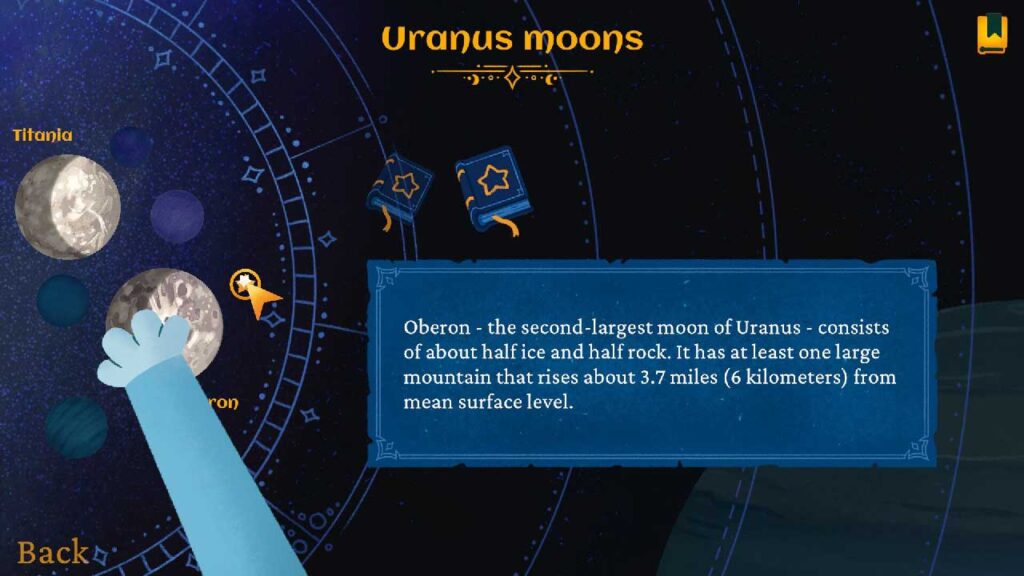 Ёсць таксама слоўнік, які навучыць вас розным тэрмінам, якія выкарыстоўваюцца ў вывучэнні космасу. Існуе невялікая блытаніна адносна таго, пра каго ісціна ў гэтай гульні. Некаторыя факты неверагодна простыя, а іншыя значна больш падрабязныя. Таму я не ўпэўнены, на каго разлічана гэтая гульня ў плане навучання. Магчыма, яны хацелі зрабіць яго цікавым для ўсіх узростаў.