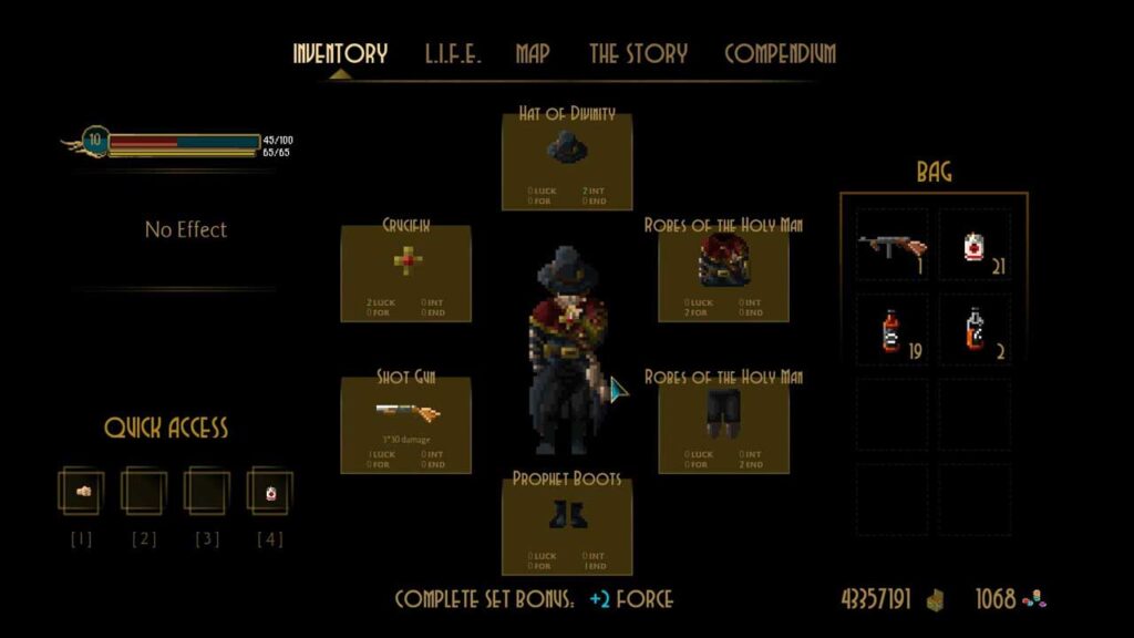 Я думаю, што выйгрышная карта Pecaminosa – A Deadly Hand заключаецца ў яе гульнявым працэсе. Гэта ролевая гульня “зверху ўніз”, якая становіцца ўсё складаней па меры праходжання і змяшчае вясёлыя баі. У дадатак да магчымасці выкарыстоўваць розную зброю, у вас таксама ёсць магчымасць наносіць удары рукамі, і ў гэтым сэнсе гэта можна лічыць своеасаблівай гульнёй з двума палкамі. Цікавай асаблівасцю гэтай гульні з’яўляецца сістэма навыкаў “L.I.F.E”, якую вы напэўна бачылі ў Fallout, механізм, у якім кожная літара належала пэўнаму навыку. Тут сапраўды тое ж самае. Гэтая сістэма складаецца з першых літар слоў «Удача», «Інтэлект», «Сіла» і «Вынослівасць», а налічэнне ачкоў у розныя навыкі азначае розны падыход да размоў і баёў. Калі вы палепшыце любы з гэтых фактараў, вы палепшыцеся ў гэтай галіне, напрыклад, калі вы выдаткуеце ачкі ў раздзеле “Сіла”, вам будзе лягчэй перамагаць ворагаў.