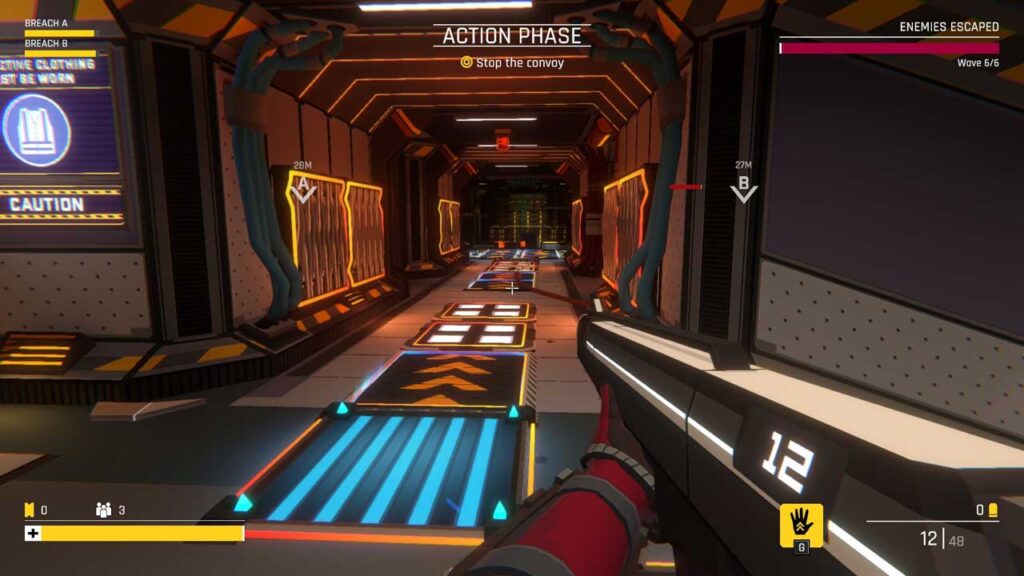 Цыкл гульні SENTRY вельмі просты: вы перамяшчаецеся па карце, выкарыстоўваючы ўзаемазвязаныя вузлы. З такім тыпам навігацыі, які адрозніваецца ад большасці гульняў roguelite, вы можаце перамяшчацца наперад і назад, выкарыстоўваючы адзін паварот за ход. Пакуль ёсць толькі некалькі вузлоў, і з-за гэтага гульня становіцца для яго вельмі паўтаральнай. Пасля таго, як вы ўваходзіце ў баявы/наступальны вузел (гульня не дае ім назвы), вы ўдзельнічаеце ў баі ад першай асобы ў стылі гульняў Tower Defense – кожная карта вызначаецца колькасцю зон, якія ў вас засталіся стаяць. Вы таксама можаце знайсці вузлы рэсурсаў/кэша, так што вы можаце пашырыць свой арсенал зброі, пасіўных і актыўных дзеянняў, а таксама пастак і абнавіць іх праз даволі простае дрэва тэхналогій.