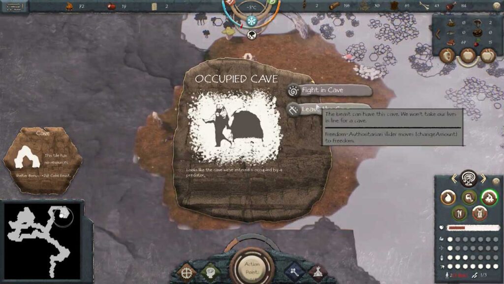 У гульні вы можаце вызначаць, як ваша племя паводзіць сябе з іншымі плямёнамі, вы можаце дзейнічаць ва ўнісон з іншымі плямёнамі або спыніць іх жыццё. У рэжыме кампаніі вы можаце вырабляць прадметы, якія павялічваюць шанцы вашага клана на выжыванне. Я не думаю, што вам трэба збіраць рэсурсы з навакольнага свету, каб стварыць гэтыя прадметы. Вы таксама можаце зрабіць некалькі рэчаў. У рэшце рэшт, ваша племя таксама людзі, і ў іх ёсць патрэбы. Ваша племя хоча быць накормленым, бяспечным і сацыялізаваным. Прадастаўляць іх залежыць ад вас. З цягам часу вы можаце ўключаць у сваё племя замежнікаў, у вас ёсць асаблівы шанец зрабіць гэта, і толькі ад вас залежыць павелічэнне яго насельніцтва. Хаця новыя людзі робяць ваш клан мацнейшым і даюць вам больш ачкоў дзеянняў, яны таксама могуць прымусіць ваш клан адчуваць сябе няўпэўнена.