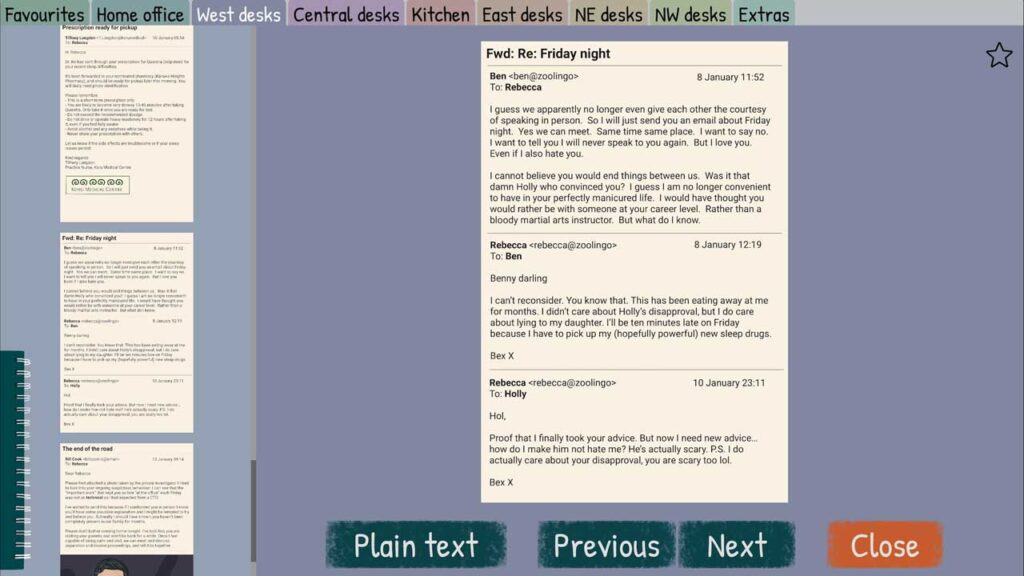 У мяне ёсць цяга да гульняў з наборам тэксту, такіх як Return of the Obra Dinn, The Roottrees are Dead і Type Help, і «A Case of Fraud» — лепшая гульня, якая цалкам задавальняе гэтую цягу. Для такога чалавека, як я, які не змог прайсці Golden Idol, таму што гульня стала занадта складанай на паўдарозе, складанасць была менавіта такой. Цікава зірнуць на непадробныя чалавечыя адносіны, якія адбываюцца ў офісе, і гэта добрая гісторыя.