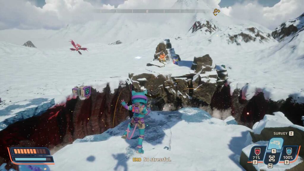 У Revenge of the Savage Planet можна гуляць онлайн з двума гульцамі, на падзеленым экране з двума гульцамі або ў адзіночку. Калі вы адзін, вы не будзеце адны, бо ёсць боты, якія будуць суправаджаць вас. Працэс даследавання вельмі свабодны. Вы можаце блукаць без мэты, лазіць па гарах і знаходзіць схаваныя куткі або выконваць місіі, каб збіраць раскіданыя часткі касмічнага карабля. Мапа распрацавана з вялікай дбайнасцю. Скачкі па платформах, доўгі паркур і некаторыя невялікія галаваломкі, якія патрабуюць мазгавога штурму, разбураюць манатоннасць бягучай карты. Асабліва калі вы скануеце новыя рэчы, на экране з’яўляецца куча інфармацыі, якая расказвае вам, для чаго гэтая рэч патрэбна, што бясцэнна.