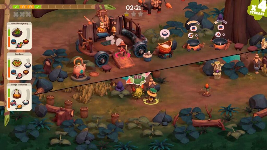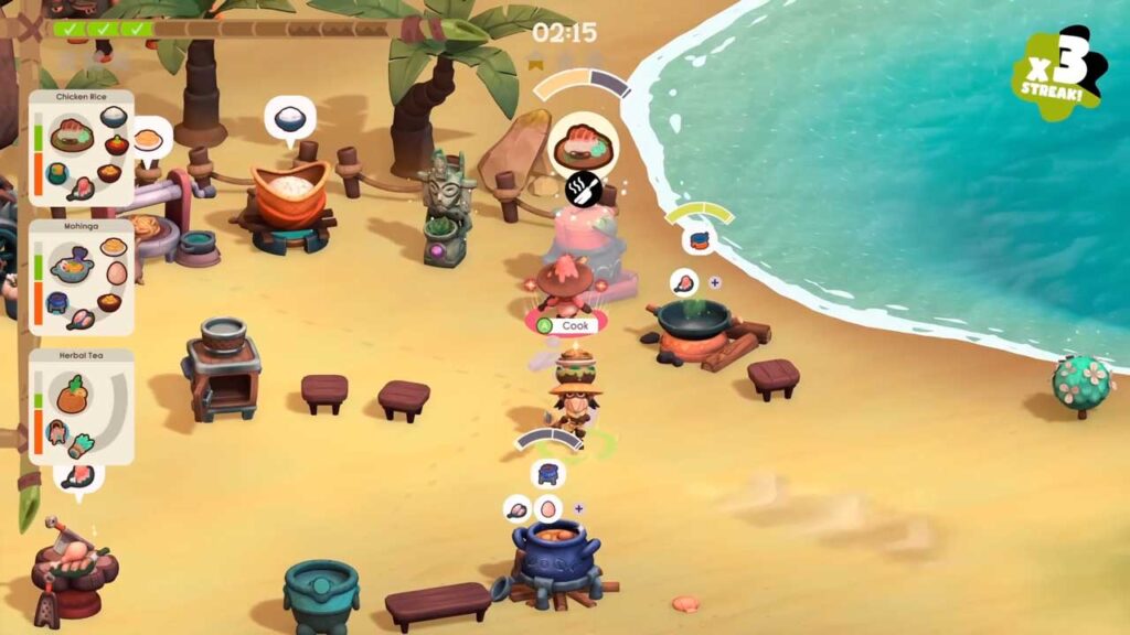 Нягледзячы на тое, што кожны этап адносна лёгкі і нават даволі просты, QTE таксама вельмі гнуткія, што дазваляе нават найменш вопытным гульцам лёгка арыентавацца ў гульні. Калі магчыма, паспрабуйце прызначыць аднаго чалавека адказным за збор інгрэдыентаў, а другога — за падрыхтоўку ежы. Калі ёсць часовае месца, гэта можа зрабіць іншы чалавек. Гэта памяншае неабходнасць пераключэння паміж задачамі і эфектыўна паляпшае гульнявы працэс. Акрамя таго, калі адзін чалавек спецыяльна размяшчае кухоннае начынне, а другі — інгрэдыенты, гульня становіцца больш кіравальнай і памяншае нагрузку на запамінанне.